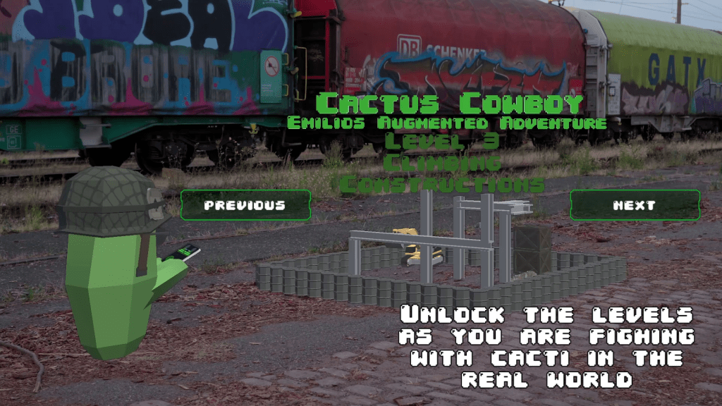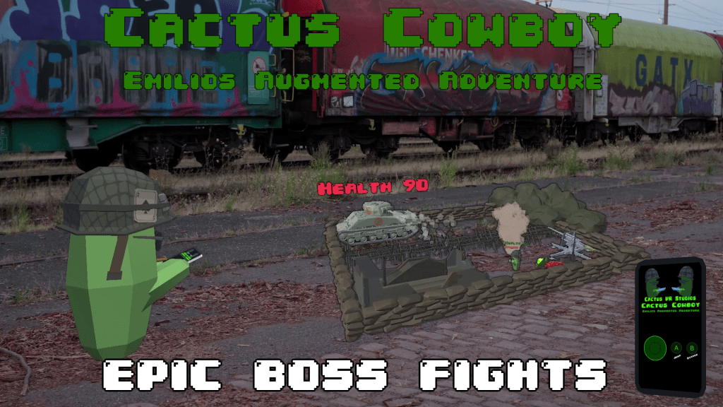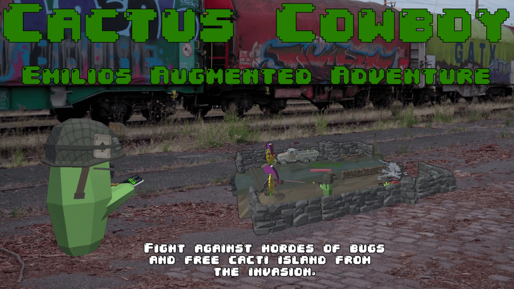In Cactus Cowboy – Emilios Augmented Adventure, you fight in your home, in your yard or where ever you want against the evil bug army. Controlled with either your phone or a wireless controller you help Emilio the little cacti soldier in his adventure. Climbing buildings, shooting enemies, helping friends and survive the relentless attacks. Even you as a player gets attacked by the evil forces and need to dodge shells and rockets.