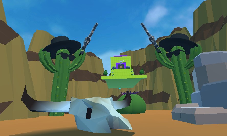 You’re the Cactus Cowboy trying to free the kidnapped cacti princess out of the hands of the evil Horst Weizenecker and his Robot Army. Loaded with your Revolver and a solid stomach to combat the motion sickness, you are off to a great adventure.